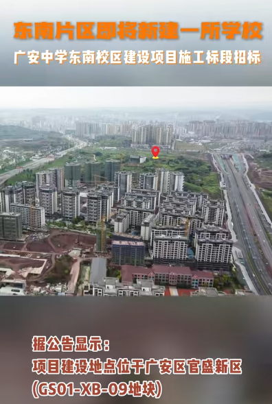 东南片区即将新建一所学校 —— 广安中学东南校区